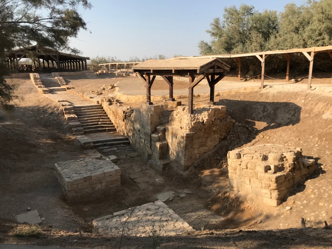 Today we visited the place where Jesus was baptised at Bethany beyond the Jordan. We renewed our baptism vows in the blistering heat at this, the lowest place on the earth’s surface. How appropriate that Jesus should stoop literally to the lowest place on earth that he might raise us to the heights of heaven. At our Eucharist the Revd Gabby Llewelyn gave this moving address.